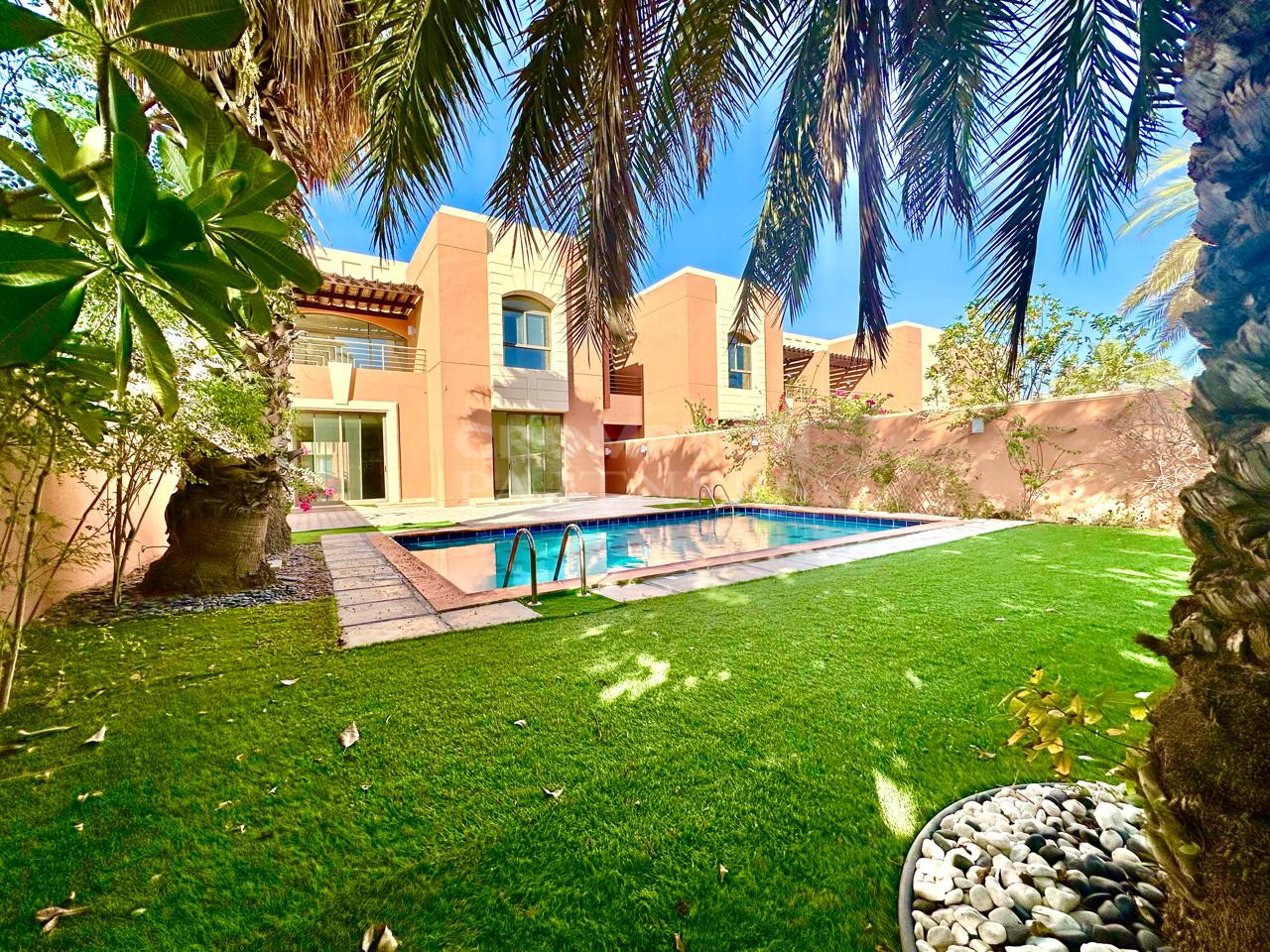 This Great Five Bedroom Villa is huge, with big back garden, and a huge living/dining room. All bedrooms are en-suite with huge windows and built in wardrobes. There is a great majelis/play area with a good big balcony. The kitchen is fully fitted with a separate door leading out onto the garden, there is a Maids Room and a powder room. Amenities: There is a Clubhouse with indoor and outdoor pools, a modern gym, squash and tennis courts, and a great Lebanese Restaurant. Spinneys Supermarket is just round the corner. There is also a beach and large grassy playing areas for the kids. Location: Located just on the edge of Abu Dhabi Island this compound has great access to Khaleej Al Arabi either out to Khaifa City A and MBZ or back into the city via Mushrif and Khalidiya. The nearest schools are Al Yasmina, Al Raha International School, Brighton College and Gems American Academy. The Shangri-la and Fairmont Hotels are also very close by.